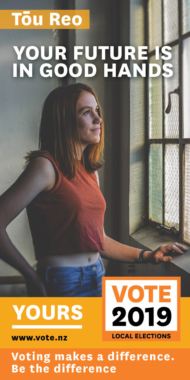 An online-led campaign to raise awareness and encourage young people (aged 18-24) to pre-enrol, enrol and vote in the October Local Body Elections 2019.